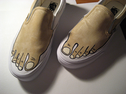Categories Arty That Hippy Look: Barefoot Sneaker by Okat Post author By prawn1 Post date February 5, 2009 If you like kustomizing things, then this is a neat idea. Using his own toes as inspiration, artist Okat has customized a pair of slip-on Vans to look like someone’s bare feet, for that all-natural hippy look. More images after the jump. Share this post: Twitter Facebook Tags custom apparel, customizations, okat, slipons, Vans ← Eyemaze: Having Fun With The Grow Series → Deadpan Comedian: Memorable Jimmy Carr Quotes