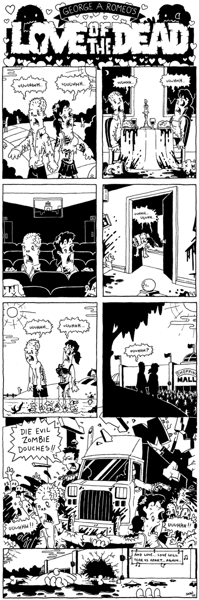 Categories Cartoons & Comics Cautionary Tales Mindlessness Love of the Dead Post author By prawn1 Post date April 24, 2009 It’s not all fun and necrophilia when you’re a zombie. Sometimes the undead live such hard lives. [via B3ta] Share this post: Twitter Facebook Tags death, love, sadness, undead, zombies ← Babel Tales by Peter Funch → Asher Roth: Loving the College Life