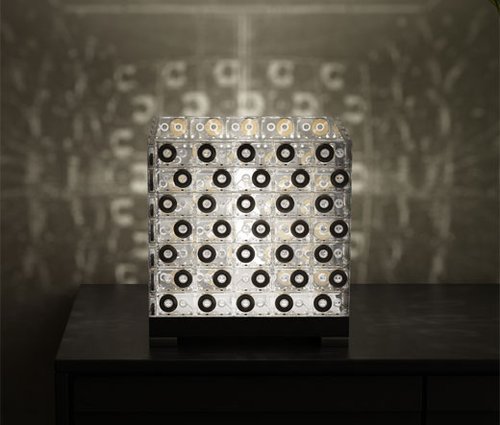 The ingenious designers at Transparent House glued together a selection of old tapes to create an super-cool source of lighting. The a cool-burning neon light source to keep the plastic cassettes from melting.