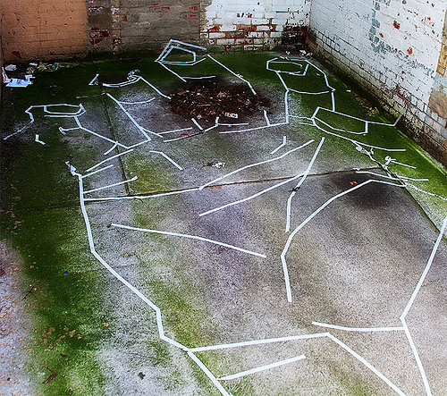 See more of Buff Diss’ masking tape graffiti on Flickr.