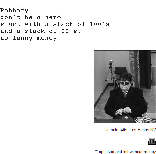 Bank Notes 365 seeks to capture the notes used in actual bank robberies. From the verbose to the succinct, from the geniuses that got away to the fools who got caught, each note is accompanied by data related to that robbery. Have a look at some of them after the jump.