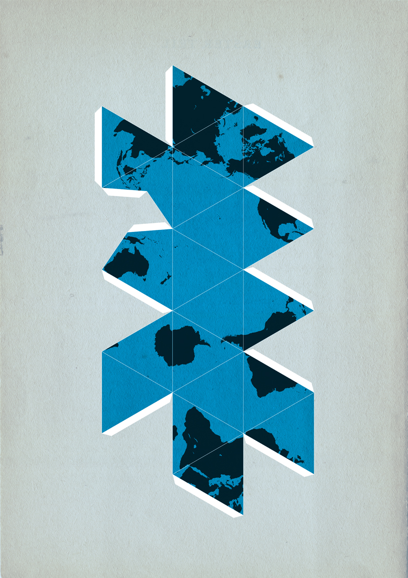 Created by Buckminster Fuller, a distinguished mathematician, the Dymaxion Map is a map of the entire surface of the earth that has been projected onto a polyhedron, unfolded, and flattened to make a two-dimensional map. This process gives the most accurate representation of the shapes and sizes of the land areas. Read more.