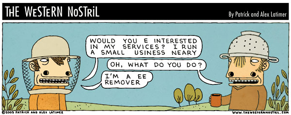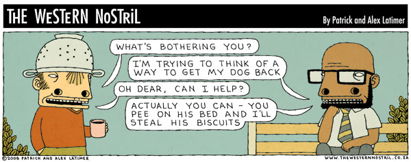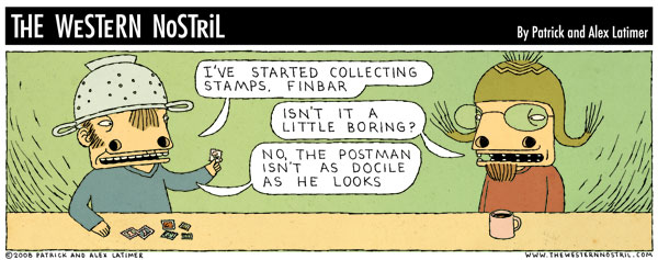 The Western Nostril is a home-grown comic strip produced by brothers Alex Latimer and Patrick Latimer. I would tell you more about it but rumour is that a great selection of free fried food is available in our staff canteen, and if you know me, you’ll know that food comes before anything. So I’ll just say The Western Nostril is clever and quirky in both its humour and visual style, and that you should have a look at some of comics after the jump.