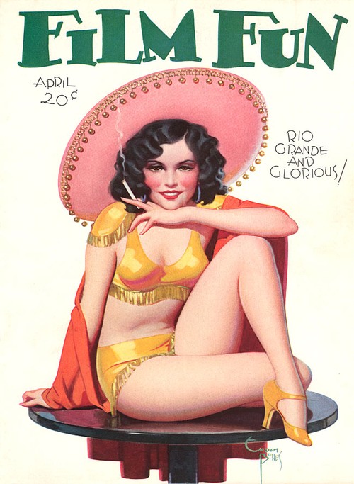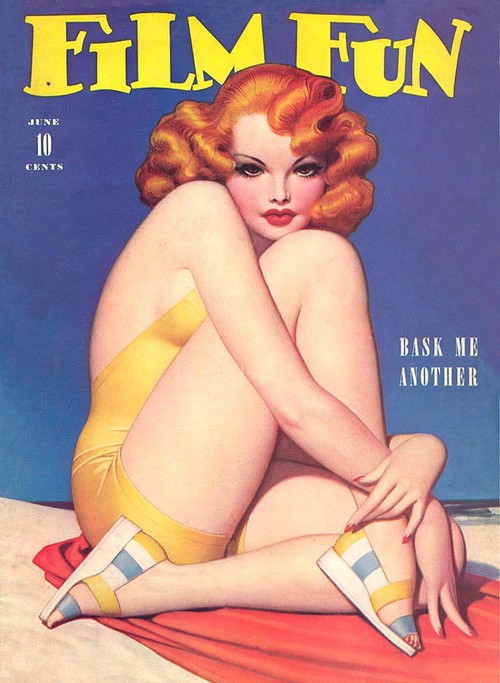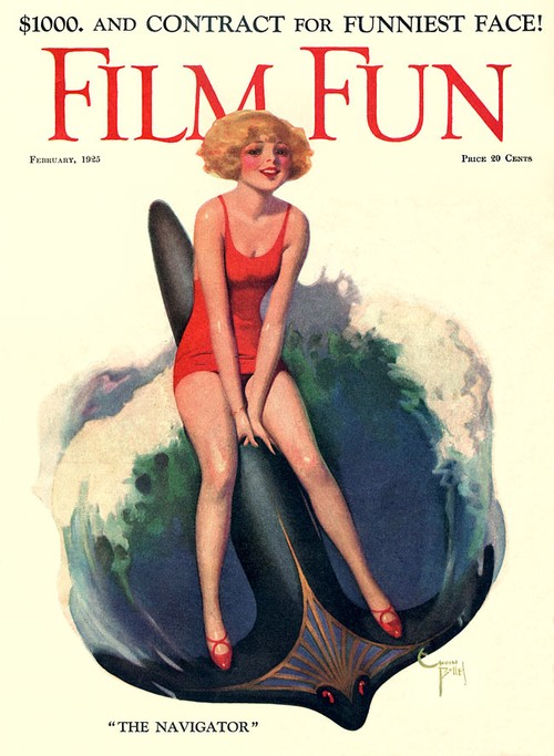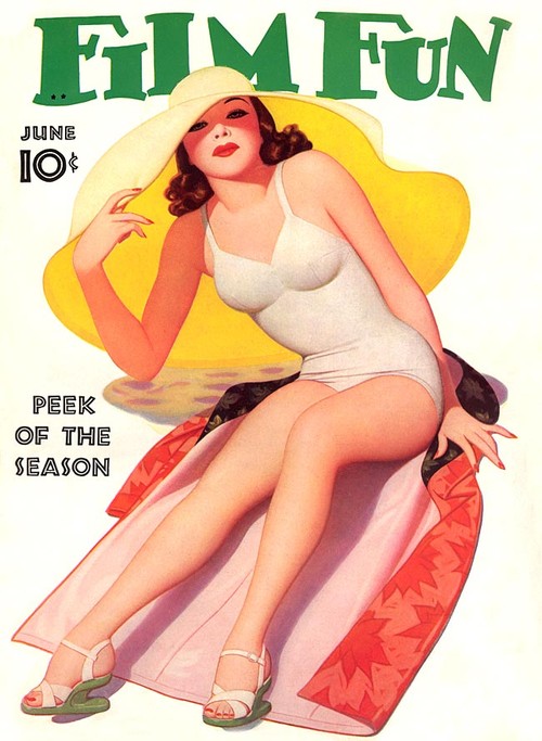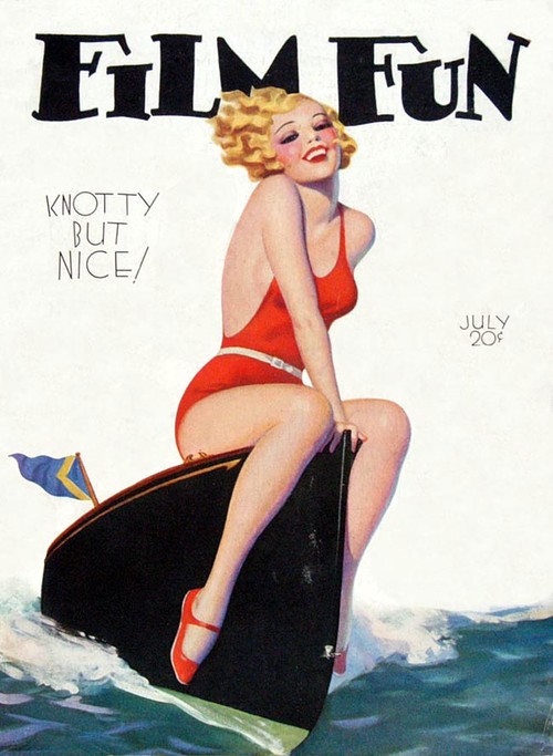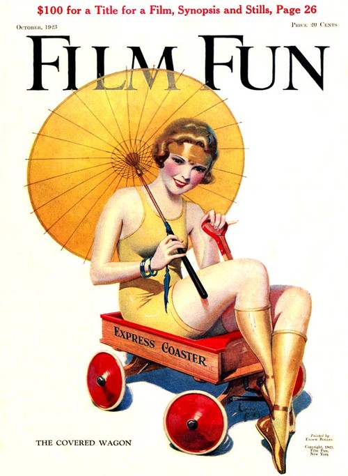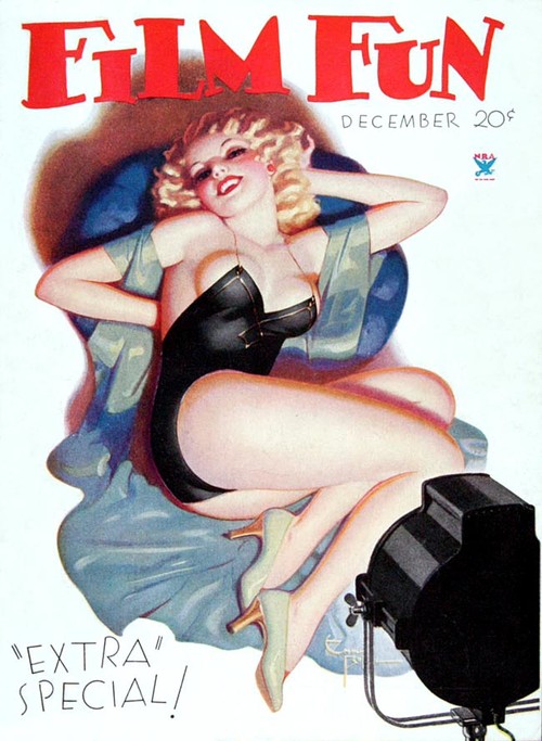 Enoch Bolles was an Art Deco era illustrator best known for his pin-up cover art for the movie magazine, FILM FUN. The magazine didn’t take itself very seriously and initially had comedians on its covers, but from 1923 Bolles was painting sexy, fun-loving, voluptuous pin-up girls in different states of undress, much to the joy of the male readership I’m sure. By 1943 when the magazine fell foul of the Postmaster General’s campaign against “salacious” material, Bolles has painted 200 covers for FILM FUN.
