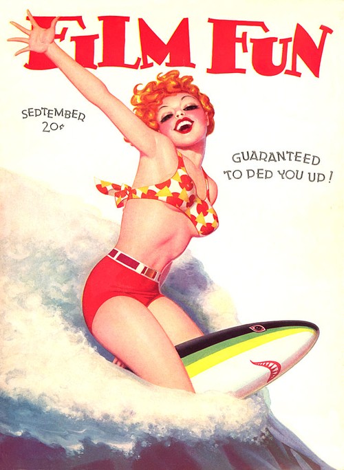 You can see more of Bolles’ work at Magazineart.org. Aside from FILM FUN, Bolles painted some 300 covers for other pulps such as Stolen Sweets, Gay Book, Titter, Cupid’s Capers, Tattle Tales, and Gay Parisienne. Emotional problems cut his professional career short in 1943 and it is rumoured that he spent his last days in an insane asylum. He died in 1976, aged 93.