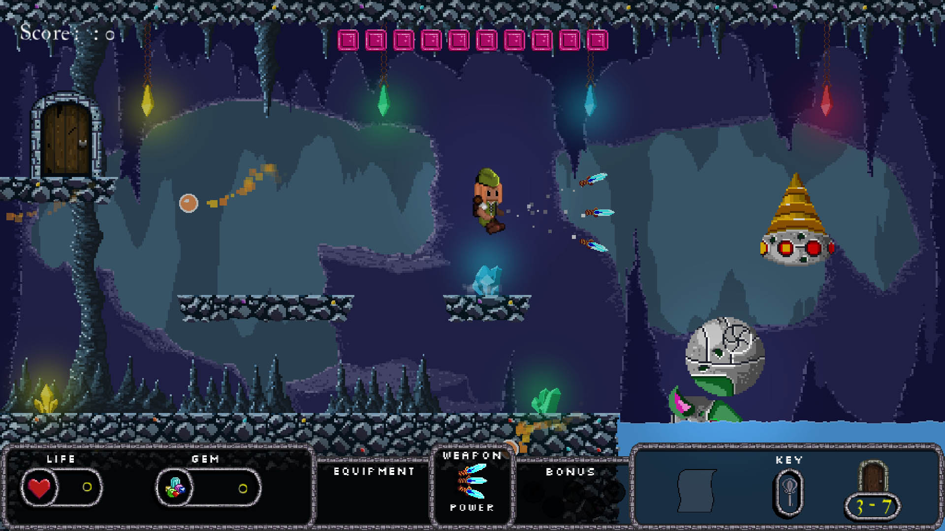 From the first off, Bard’s Gold presents itself as a merciless, no-holds-barred, hard-as-f**k side-scrolling platformer that gives absolutely no quarter. You can start the game in one of three different modes: Normal, Retro, and Roguelike. Normal starts you off with more lives, but you pick up less loot and there is less variation in the progression of levels. Retro gives you more loot per kill, fewer lives, and mixes up the levels a bit. Roguelike mode gives you a health bar, plenty of loot, a decent mix in the levels, but furthermore doesn’t bother to checkpoint your progression through the game’s worlds. In both Normal and Retro modes, the hero is a one-hit-wonder, and will lose a life and respawn at the level entrance if you take even an iota of damage. To be frank, it doesn’t matter too much whether you’re initially playing on Normal or Retro, because either way you’re going to die fairly quickly.