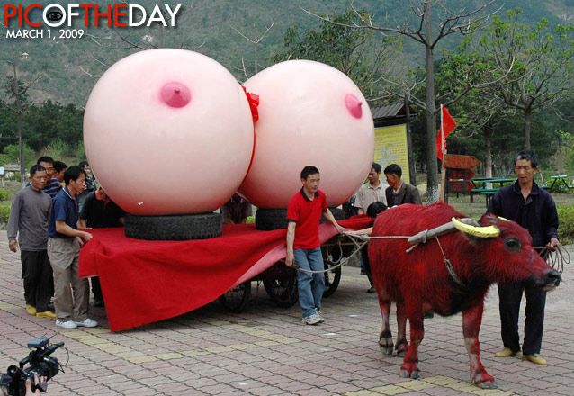 A sculpture of breasts by Chinese artist Shu Yong designed to increase people’s appreciation for natural curves in a country where plastic surgery is booming. Shu’s work is now being showcased to a rural audience.